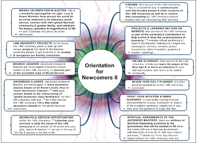 Furthermore, we are currently working on making the curriculum of the I AM University available in mindmap format. The purpose of mindmaps is to provide a more right-brain element to the work of the I AM University so we may offer a more “brain-balanced and integrated” approach to the vast body of the I AM University teachings. They also represent an option for those who lack the time and/or interest to read thousands of pages. While some people prefer a more left-brain approach to reading and learning, others prefer a more right-brain approach. Since the I AM University is all about integration and balance, and since we are living in a fast-pace society, it was deemed only appropriate to find ways to speak to our more right-brain-attuned audience, and to generally offer the more left-brain reader and student a more right-brain complement – in order to create a proper brain-balance. It shall also serve as an incentive to reach a larger global audience. Mindmaps for the eight correspondence courses are scheduled to be released in 2007.